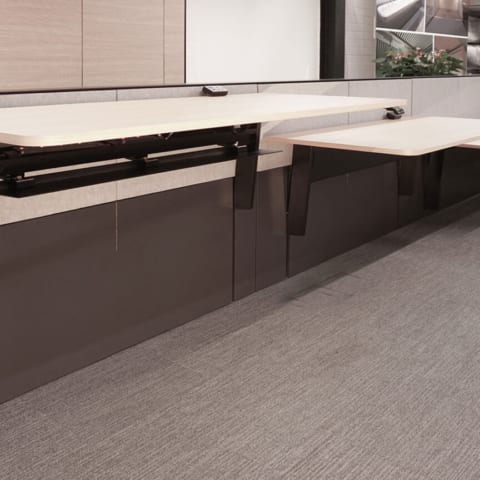 Height-adjustable desks designed for ergonomic precision and adaptability in commercial office settings. Engineered with a universal electric actuator, these desks meet EN ISO 9241-5 standards, offering a full range of ergonomic adjustments.